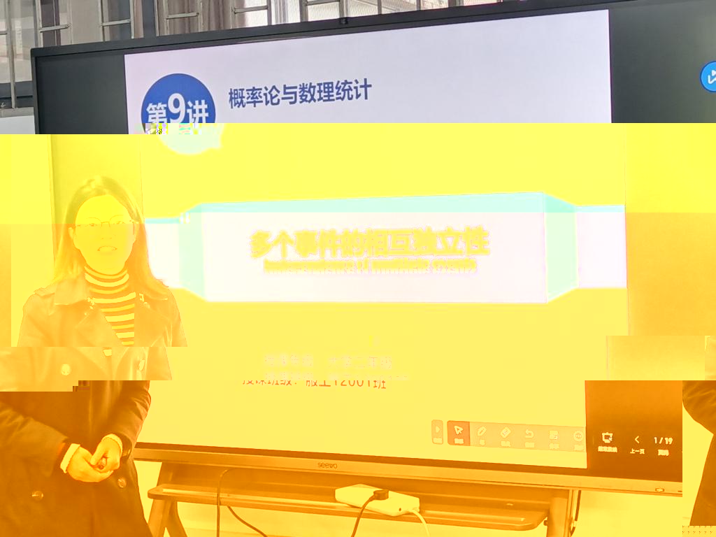 張群嬌老師進行了題為“多個事件的相互獨立性”的 公開課講授。張老師從課程回顧,課程引入,課程講解,課堂活動和課後小結等方面講述相關内容。張老師在授課的過程中設置了巧妙的教學互動,穿插了課堂思政的案例和視頻。并于報告後交流課程思政案例和視頻處理的方法。