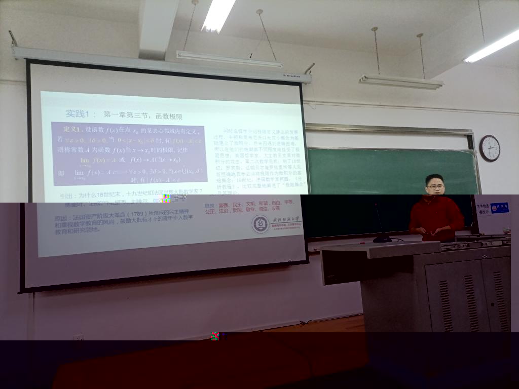 羅進老師的報告題目為“高等數學課堂思政教學的思考和實踐”。該報告介紹了函數極限及無窮小比較章節的思政内容,從極限的發展史引申到社會主義核心價值觀的宣講,從無窮小的比較到學生樹立正确人生觀、世界觀、價值觀的方法途徑。