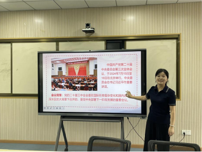 活動中,肖梅霞書記首先帶領大家認真研讀了全會公報,詳細解讀了其中的新思想、新論斷、新要求。随後,與會老師們結合自己的工作實際,紛紛發表學習心得,就如何将全會精神融入日常教學、科研工作中進行了深入交流和探讨。