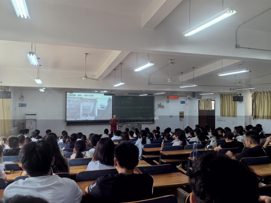 講座中,張教官結合真實火災案例與校園實際,通過現場教學,圍繞火災危害、火災預防、火災救助、火災逃生進行了詳細講解,增強了入校新生對消防安全的認識,提高了火災防控與應急處置能力。