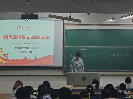 為激發青年學子參軍報國熱情,助力國防現代化建設,11月23日晚,數學與統計學院于三号教學樓118教室面向全體大一新生隆重舉行征兵入伍宣講會。本次宣講會由學院兼職輔導員孫老師出席指導,一班班長穆思安同學擔任主講,為初入大學校園的同學們帶來了一堂生動而深刻的國防教育課。