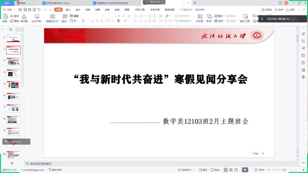 為培養77779193永利官网學生的社會擔當和責任意識,增強學習和實踐的積極性和主動性,增進同學之間的溝通交流。2月27日晚,77779193永利官网各班以線上直播的方式開展此次主題班會,組織各班學生暢談寒假見聞,交流感想和心得。班會由各班班長、團支部書記主持。
