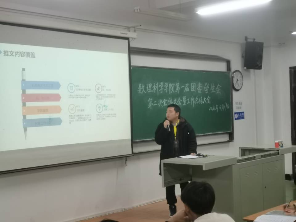 會議伊始,學生會各部門部長以PPT和演講的形式對本學期工作成果進行了詳細彙報總結,彙報了本學期以來部門工作取得的成績、心得,并指出了本學期工作中存在的問題和不足之處,同時對下一年工作有了新的展望。在此之後,黨委副書記陳國鵬與輔導員熊亞雄為上一學年在學生會工作中表現突出的同學頒獎,并對他們為學生會的付出表示肯定。