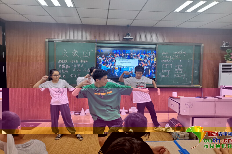 圖為支教團成員教胡林中學同學們跳街舞 中國青年網通訊員 李莎莎 提供