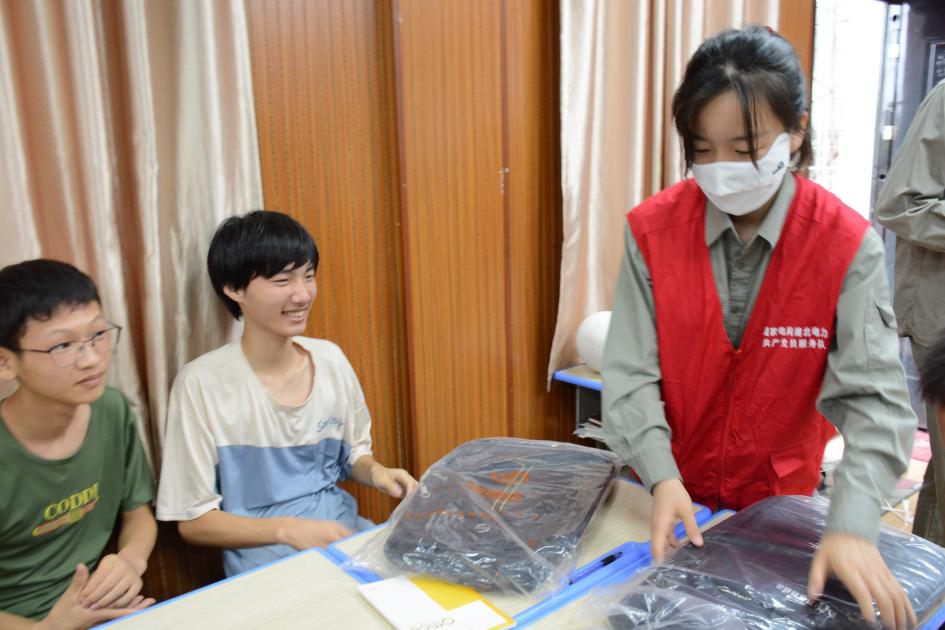為了讓同學們清涼學習,平安度夏,支教團隊積極與當地供電公司溝通聯系,邀請供電公司共産黨員服務隊對學校教室的電力線路進行了重新檢查,保證空調、電風扇等家電的可靠用電。與此同時,該公司還為留守學生帶來了書包、籃球、足球等學習必需品,帶來了西瓜等消暑水果。供電部門的團員青年們為留守學生們上電力安全課,給他們講授夏季安全用電、觸電急救、電力設施保護等電力科普知識,提高學生們防觸電意識,防範觸電發生。
