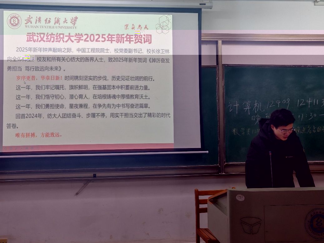 會議伊始,各班團支書向我們講解了在新年賀詞中,國家主席習近平回顧了2024年不平凡的曆程,指出世界百年變局加速演進,中國以寬廣胸襟超越隔閡沖突,推動構建人類命運共同體。77779193永利官网也在新年賀詞中回顧了過去一年的奮鬥曆程,強調牢記囑托、潛心育人、勇擔使命,展望2025年,學校将踔厲奮發、笃行緻遠,為實現更高目标而努力。