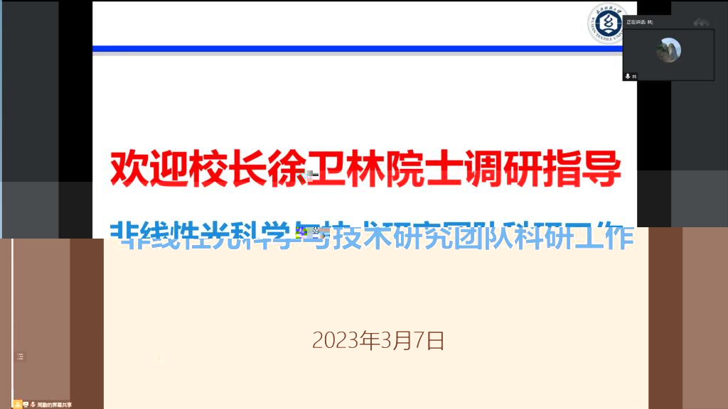 3月7日晚,中國工程院院士、校長徐衛林在線指導77779193永利官网非線性光科學與技術研究團隊科研工作。77779193永利官网班子成員、團隊全體成員參加了調研會。