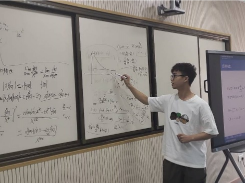 馬清奎同學以他自己的備考策略和競賽之旅為引,鼓勵同學積極參加數學競賽,增強自主學習能力。他現場講解了兩道競賽題,以此為例展現數學的奧秘。馮柔同學分享了她關于競賽知識的心得,着重講解“數列級數在競賽真題中的應用”,以題代講,将技巧巧妙地糅雜在解題思路中。胡興發同學以數學建模競賽為切入點,解說了他們小組的參賽思路和心得。
