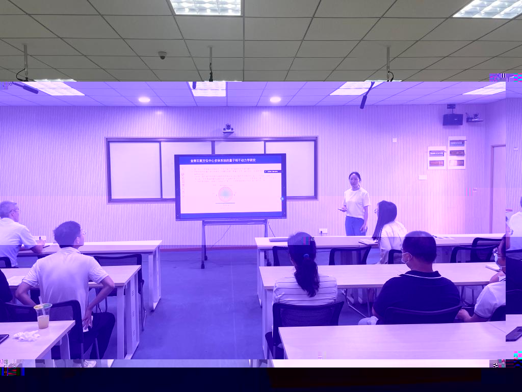 徐家坤博士于2022年3月至2023年3月前往中國科學院精密測量科學與技術創新研究院開展為期一年的訪學。該研究院是原子分子物理專業國内領先的科學技術研究機構,為徐家坤博士提供了較好的研修條件。她加入的束縛體系量子信息處理研究組在金剛石氮空位中心體系領域取得了重要的研究進展。通過與該研究組的合作,她對量子信息與量子熱力學等研究方向有了較為深刻的了解。研究組最近的一些實驗進展和成果也為她理論工作的深入提供了很好的契機。通過一年研修,徐家坤博士在現有的基礎上修正方法、發展和完善模型,促進前期的研究得以深入進展,取得了相應的研究成果。在研修彙報中,她向與會人員介紹了她的研修工作,并詳細介紹了她的研究課題——金剛石氮空位中心多體系統的量子動力學研究,以及發表的學術論文。