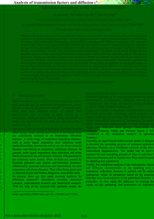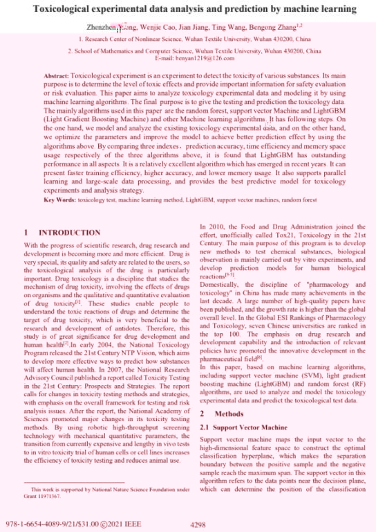Toxicological experimental data analysis and prediction by machine learning Analysis of transmission factors and diffusion characteristics of respiratory infectious diseases on Multilayer social networks |
